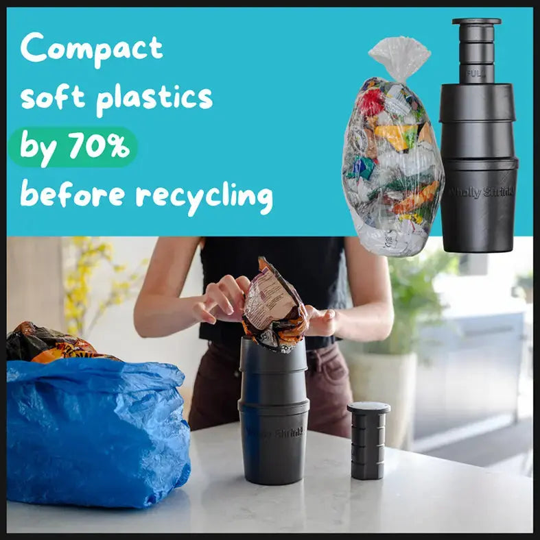 - Compact your soft plastic by up to 70% before recycling
